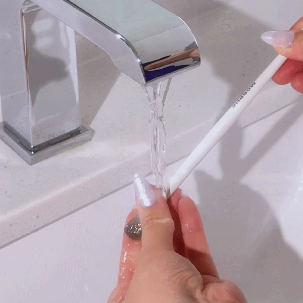 Gently squeeze out any excess moisture, before placing your brush flat or upside-down to air-dry.
